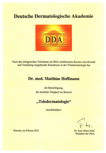 Umfangreiche Fortbildungen, sichere deutsche Provider mit hoher IT-Sicherheit und die Verleihung des Zertifikates „Teledermatologie“ der Deutschen Dermatologischen Akademie (DDA) garantieren Ihnen die höchsten datenschutzrechtlichen Sicherheitsstandards gemäß der europäischen Datenschutzgrundverordnung (DSGVO).